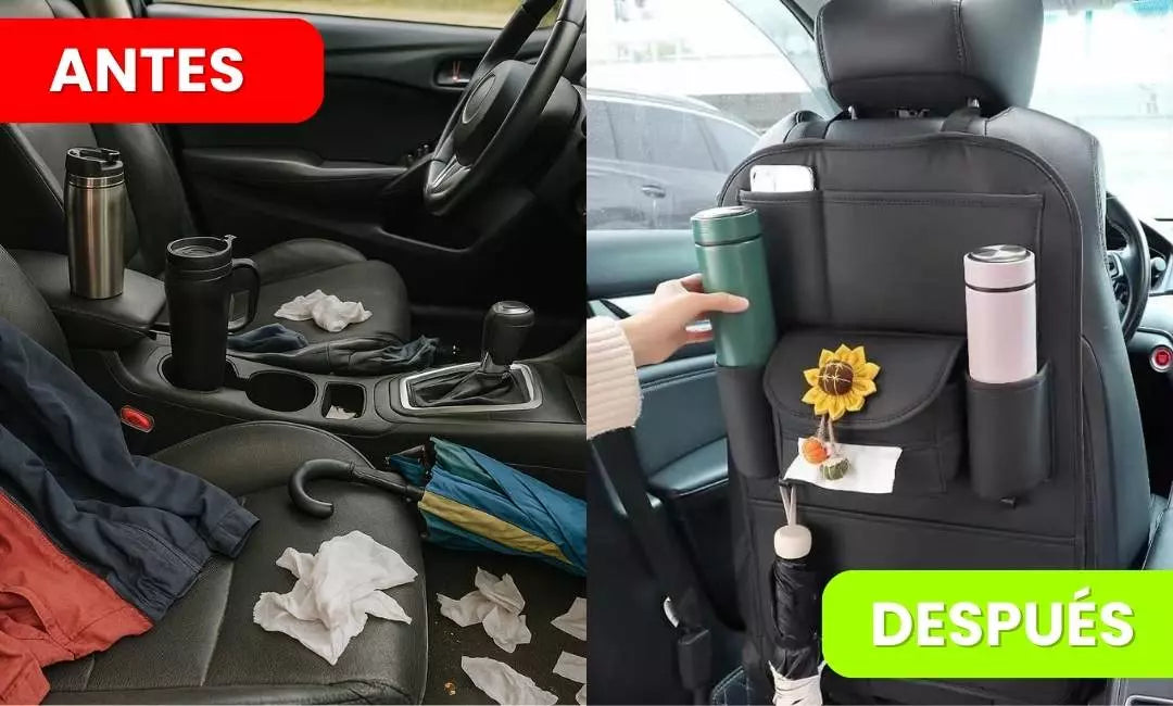 📱 Espacios diseñados para botellas, móviles, pañuelos y más.