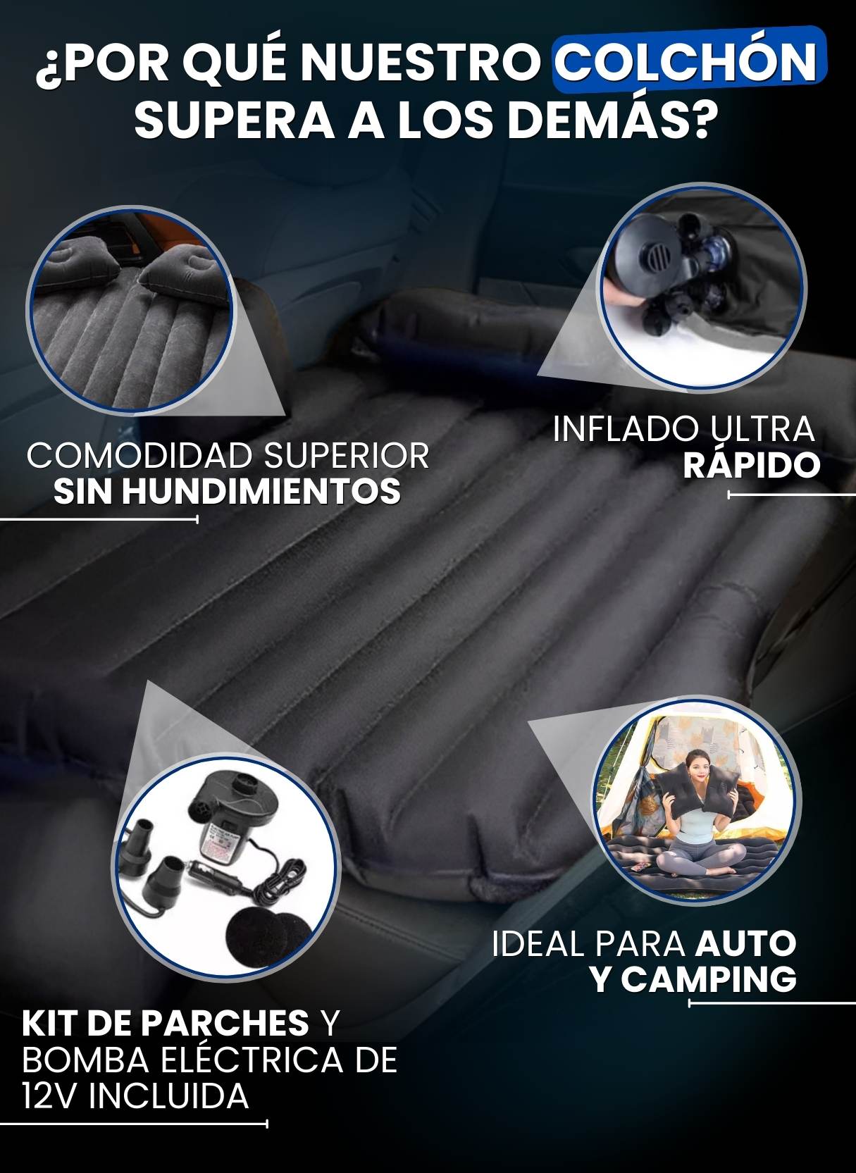 🛏️ Confort instantáneo: Transforma tu auto en una cama cómoda y segura.